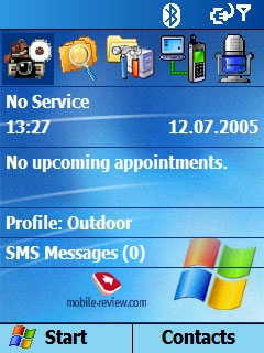Несмотря на то, что устройство анонсировалось на новой версии ОС WM 5.0, в продажу оно поступит со старой версией ОС, апгрейда скорее всего не будет. Стандартному программному обеспечению Windows Mobile 2003 SE на QVGA разрешении посвящена отдельная статья, ее можно прочесть здесь. Расскажем о программах, которые не входят в стандартный набор.
