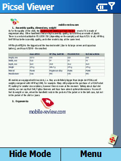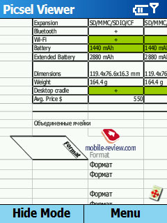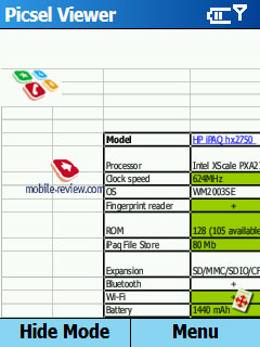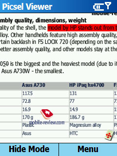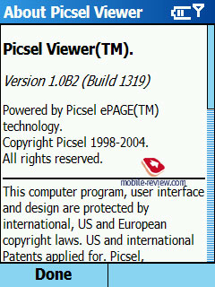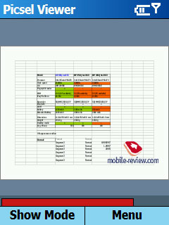 Picsel Viewer. Эта программа для просмотра офисных документов становится стандартом для топовых продуктов Samsung. Программа позволяет очень корректно отображать документы, сохраняется все форматирование. Ни встроенный пакет Office Mobile в Window Mobile 5.0, ни Documents To Go на Palm OS не умеют отображать документы так бережно, как это делает Picsel Viewer.
