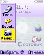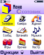 Функционально этот аппарат - улучшенный вариант нокии 3650, как я уже говорил. Если даже говорить о структуре меню - сименс не удержался, и прорисовал несколько папок в своем собственном стиле (в частности, на картинке ниже - Камера, Органайзер, Музыка, Игры, Прочее и Настройки - это не приложения, а папки). В чистом нокиевском симбиане этого нет. На самом деле, я нимало удивлен работой, проведенной по приведению интерфейса этого аппарата в приемлемый вид. Последние аппараты сименса как-то совсем не впечатляли художественными талантами разработчиков... Переключаемость запущенных приложений - стандартная для нокиевского симбиана: долгим удерживанием клавиши "Меню".
