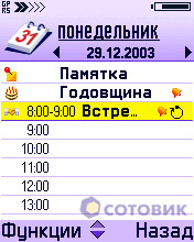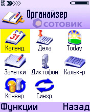 Органайзеры 6600 и SX1 сравнивать не имеет никакого смысле - они одинаковые. Разве что в сименсе дополнительно подсвечивается воскресенье. В остальном набор стандартных приложений идентичен: Дела, Заметки, Калькулятор, Конвертор величин, Будильник, Синхронизация, Диктофон. В принципе, можно было бы докопаться до будильника - в сименсе уже предустановлено дополнительное приложение, в котором есть возможность настраивать несколько нормальных будильников, а не одноразовое убожество. Но для 6600 я попросту не нашел такого приложения (оно есть для 3650, но на 6600 работает некорректно); думаю, позже появится.