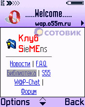 На радость заядлым нет-навигаторам нашлась и Opera для этого аппарата. Скажу сразу: от 6600 небудет работать, где бы и что бы вы об этом не читали. Злые языки утверждают, что все работает лучше некуда, однако, лично у меня опера версии 6.10 для 6600, во-первых, не показывала стандартную свою иконку "О", а просто некий конвертик рисовала, а во-вторых, вместо нормальной работы выдавала сообщение "System error". Но, как я уже сказал, это не беда, потому как есть версия 6.01 именно для SX1, можете порыться в сетке и найти её сами, а можете скачать по ссылке под картинками чуть ниже (учтите только, что здесь она выложена Trial version - четырнадцатидневка).
