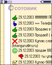 В телефоне отсутствует EMS-сервис. Об этом прямо говорится в инструкции и, в принципе, этого и следовало ожидать от нокие-подобного аппарата. Впрочем, уж не знаю, как кого, а меня сей факт вообще не волнует. Нету EMS - ладно, гораздо интереснее другой факт: аппарат поддерживает (что и естественно) Nokia Smart Messaging, но насколько я успел заметить, подержав в руках уже три аппарата, в нем отсутствуют (что совершенно неестественно) изначально картинки, которые обычно идут в нокиях по-умолчанию. На самом деле их можно туда переслать с нокии, но - это ж ещё и нокию надо поблизочти обнаружить :)) Впрочем, я поступил просто: вынул их из 6600 в таинственном формате *.OTA и засунул в сименс. Он их принял без сучка-задоринки. На всякий случай и с вами поделюсь, ибо подозрение у меня такое, что положить их в аппарат забыли и вспоминать не скоро соберутся. Просто скачиваете эти файлики, и через ИК-порт, блютус или кабель с компа засовываете их в аппарат.