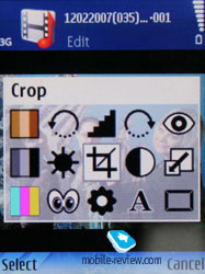 Давайте остановимся на небольших функциях, как-то редакторе изображений в галерее. Теперь он приобрел практическую направленность, снимок можно откадрировать, применить цветовые эффекты, увеличить контрастность и резкость, наложить что-то из ClipArt и так далее. Своего рода небольшой графический редактор для приведения в порядок фотографий, полученных здесь же, на устройстве. Это правильное направление развития, аналогичные шаги предприняла компания Sony Ericsson, в частности, в серии аппаратов CyberShot появился аналогичный редактор PhotoDJ.