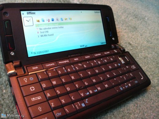 Но давайте откроем устройство! Вот перед нами стандартная клавиатура приличного размера и великолепный дисплей с разрешением 800x352 пикселя. Пользовательский интерфейс S60 подходящим образом переделан под размер внутреннего экрана.