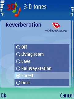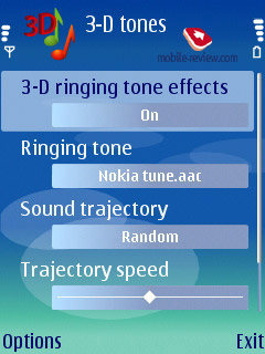 В разделе Программы присутствует приложение 3D Tones, в нем можно включить поддержку объемного звучания звонков, выбрать различные стереоэффекты (реверберация, в частности, траектория звука). Эффекты реализованы неплохо, их слышно. Но в целом данная функция – всего лишь маркетинговая уловка применимо к рассматриваемому аппарату. Проведенный опрос показал, что большинство не слышит разницы между различными эффектами на одной и той же мелодии, воспринимает ее во время звонка одинаково.
