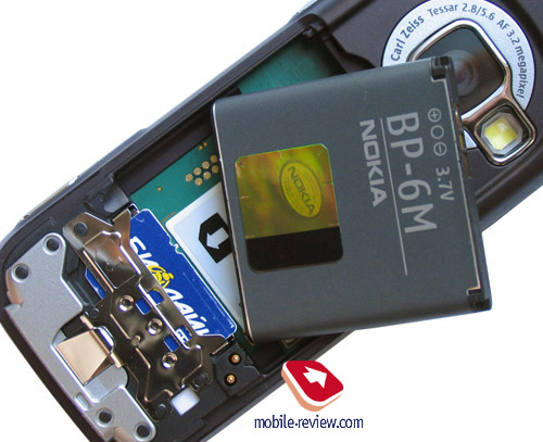 Под задней крышкой скрывается литий-полимерный аккумулятор BP-6M емкостью 1100 мАч. По заявлению производителя, он способен обеспечить до 370 часов работы в режиме ожидания в UMTS-сетях (350 часов – в GSM) и до 4 часов работы в режиме разговора. В условиях активного использования устройства его хватает на один день, с утра до вечера (30 минут просмотра Интернет, получение почты несколько раз, до 20 минут использования других функций, час разговоров). Аппарат однозначно ведет себя лучше, чем Nokia N80, имеет примерно 30-процентный запас прочности по времени работы. При умеренном использовании телефона его среднее время работы составит 2 дня. Большее время работы недостижимо. В непрерывном режиме прослушивания музыки при максимальной громкости время работы составило в нашем случае около 12 часов. Время полного заряда аккумулятора превышает два часа.