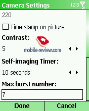 При съемке можно задать режим Burst (серия снимков) или timer (съемка по таймеру), включить/выключить вспышку. Доступен цифровой зум до 4x (реальной пользы от него нет, он только еще больше ухудшает качество). В настройках можно задать баланс белого, отобразить дату на снимках, настроить вручную контрастность. На этом все настройки исчерпываются, можно сказать, что они обширны, но далеко не максимальны.