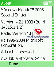 Смартфон работает под управлением операционной системы Windows Mobile 2003 for Smartphone Second Edition. О стандартных ее возможностях вы можете прочитать в соответствующем обзоре на нашем сайте.