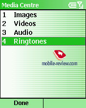 Media Center. Утилита, отвечающая за соблюдение цифровых прав на мобильный контент (изображение, аудио, видео, рингтоны). Файлы незащищенные цифровыми правами можно послать на другое устройство по инфракрасному порту или Bluetooth.