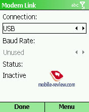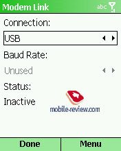 Modem Link. Смартфон можно использовать в качестве внешнего GPRS модема, например, в паре с ноутбуком.