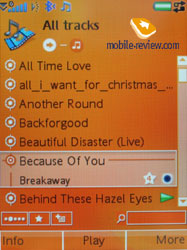 У W950i с управлением плеером не все так гладко, клавиши управления «размазаны» по корпусу довольно бездумно. Судите сами: на передней панели находятся клавиши перемотки, кнопка Play/Stop, клавиша запуска плеера. На правой панели находится кнопка Play/Stop, качелька регулировки громкости, на левой – Jog Dial, с его помощью вы можете выбирать композицию для прослушивания, запускать воспроизведение. Ну и, конечно, есть еще сенсорный дисплей, с его помощью можно работать с музыкальной коллекцией, осуществлять перемотку внутри композиции и т.д. В итоге – полная неразбериха, дополнительный шарм придает тот факт, что ряд клавиш под дисплеем довольно трудно нажать, особенно людям с большими пальцами. В управлении W950i задействован большой палец (работаем с кнопками под дисплеем, регулировкой громкости), указательный палец (выбираем композицию из списка) и даже указательный палец другой руки (это если не использовать стилус) – им мы можем быстро перемотать композицию, зайти в музыкальную библиотеку. Сноровка приходит со временем, на автомате работать с управлением W950i у меня начало получаться после двух недель использования. Все-таки при наличии сенсорного дисплея нужно или отдавать управление на откуп виртуальным клавишам, размещая дополнительные клавиши в одном месте (например, на торце). Или же делать пятипозиционный JogDial, чтобы можно было совершать с его помощью различные манипуляции (не только выбор композиции, но и Play/Stop). Кстати, один из участников фокус-группы высказал такую мысль: а почему бы не сделать еще один Jog Dial на другом торце, может быть, размером поменьше, для перемотки композиций?