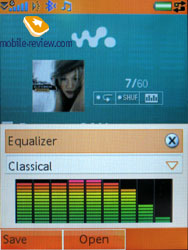 В W950i картина похожа: имеется десять предустановленных настроек эквалайзера (Mega Bass, громкость, усиление высоких частот, рок, вечеринка, поп, танец, джаз, классика, речь) плюс стандартная настройка, пользователь не имеет возможности самостоятельной настройки эквалайзера. В принципе, это и не нужно. Участники фокус-группы отметили работу режима «Громкость», по их мнению, пользоваться стоит только ей, остальные настройки не столь интересны. К примеру, Mega Bass усиливает басы, но на большой громкости начинаются проблемы с воспроизведением, появляются хрипы и т.д. Интересный момент: пункты, которые у N91 вынесены за рамки работы с эквалайзером (расширение стерео, усиление басов), вполне могли бы остаться там же, где у Sony Ericsson W950i. В самом деле, ведь не вынесены же в отдельный пункт меню «Громкость» и «Mega Bass».