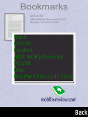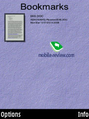 Picsel Browser. В качестве замены Quick Office в Samsung решили установить на этот аппарат Picsel Browser, он хорошо знаком по обычным телефонам этой компании. Программа позволяет только просматривать офисные файлы, а также PDF, изображения и так далее. В текущей версии есть Избранное, окно Истории, в обоих случаях поддерживается визуальная навигация (иконки документов на странице).