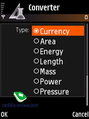 Конвертер единиц измерения. В меню органайзера можно найти конвертер различных величин.
