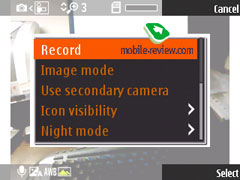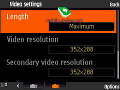 Видео телефон пишет с хорошим качеством, доступно разрешение 352х288, 176х144 точек, частота кадров – 15 в секунду. Формат записи – MP4; можно отключить звук, ограничений по длительности как таковых нет, если не выставить режим для MMS.