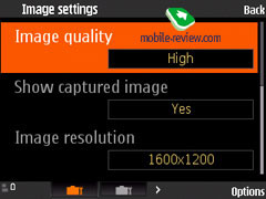 В настройках доступен выбор разрешения снимка – 1600х1200, 1152х864, 800х600, 640х480 и 320х240 точек. Качество снимка может быть одним из трех – Высокое, Нормальное, Базовое. Вариант съемки – обычный, серия снимков, таймер (10, 20 или 30 секунд). Присутствует ночной режим, возможность настройки баланса белого – Sunny, Incandescent, Fluorescent. Настройки цвета стандартны, это своего рода эффекты – Sepia, Black&White, Negative.