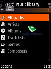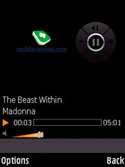 Музыкальный плеер стандартный, у него только несколько изменился интерфейс. К минусам относится отсутствующая поддержка Album Arts. В целом для немузыкального решения плеер вполне достойный, качество звучания типично для платформы S60 (безусловно, проигрывает Nokia N91, но сравнимо с тем же Nokia 3250).