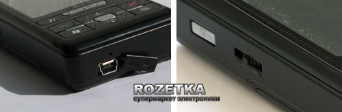На правой боковой стороне коммуникатора находится слот для карты памяти MiniSD и разъем для подключения наушников который одновременно служит разъемом для подключения внешней антенны.