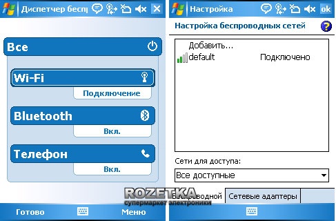 то по крайней мере, во время пользования популярного Интернет-пейджера QIP в течение более часа, и нескольких заходов на почту соединение не прерывалось и никаких неприятных неожиданностей не случалось. К работе беспроводного WiFi, адаптера претензий "условно" нет, условно - потому, что по какой то причине с первого раза коммуникатор не удалось соединить с беспроводной точкой доступа, аппарат видел беспроводную сеть, но при попытке подключится к ней, выбрасывал уведомление что подключится не удалось, и предлагал зайти в настройки подключения и отправлял в стандартный экран менеджера беспроводных соединений, с которого собственно все и начиналось, и вот после "гуляний" по этим вкладкам коммуникатор подключился таки к точке доступа.