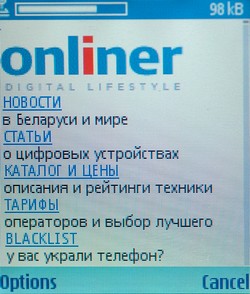 Разрешение дисплея – минимальное для данной категории устройств (176х208), что накладывает некоторые ограничения на функциональность N91. Например, WEB-страницы выглядят не очень хорошо, и даже иконки главного меню приходится прокручивать. Из-за необходимости размещения большого количества информации в маленьком разрешении страдает четкость изображения. Разрешение – единственная проблема матрицы. Яркость и сочность цветов, а также ее поведение на солнце и углы обзора особых нареканий не вызывают (впрочем, как и бурных положительных эмоций).