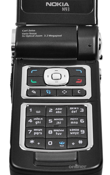 В раскрытом виде ощущение громоздкости усиливается, т.к. нижняя часть телефона несколько больше верхней и находится на небольшом расстоянии от нее. Верхняя половинка оказывается под небольшим углом. Пользоваться N93 в таком виде обладателям маленьких ладошек будет, скорее всего, неудобно.