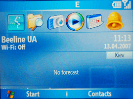 Кроме всем привычной полноценной клавиатуры у данного гаджета есть целое множество достоинств. Например, всем любимая и родная Windows, правда не XP или 98, а мобильная версия Mobile под номером 5. Однако создатели не забыли главное предназначение смартофона, поэтому аппарат без проблем себя чувствует в сетях GSM 900/1800/1900 и только введенному в Украине UMTS 2100. Но как бы ни старались инженеры уменьшить детали и увеличить плотность интеграции, аппарат получился вовсе немаленьким – его размеры составили 111x59x12 мм. А вот вес, несмотря на все усовершенствования оказался в пределах нормы и составил 95 граммов. Питание все этой мобильной электронике, и в частности процессору на 220 МГц, обеспечивается Li-Ion аккумулятором емкостью в 1100мАч. Согласно инструкции этого должно хватать 3,5 часа разговора. А вот пользоваться им можно будет не более 3 часов – в реальных условиях аккумулятора явно не хватает.