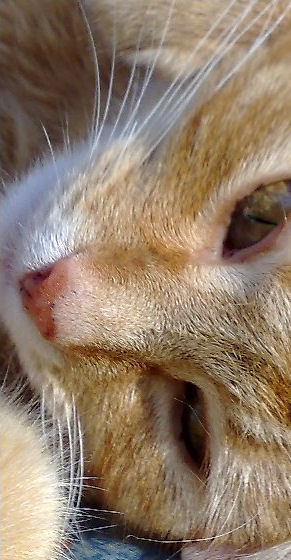 Sony опять слева, цветовая гамма явно побогаче. Но детали кошачьей мордочки более подробно прорисованы на снимке справа, полученном с N95.