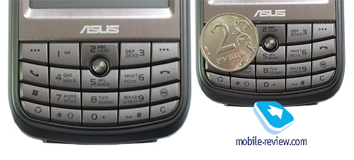 Всего на лицевой стороне под дисплеем находится 20 клавиш. Они расположены по пять штук в четыре ряда. Между клавишами есть минимальные зазоры. Кнопки достаточно большие по площади, работать с ними удобно. Этому способствует четкий ход и характерный щелчок при нажатиях на отдельную клавишу. Небольшие трудности возникают только при использовании нижнего ряда кнопок. Он расположен слишком плотно к нижней кромке, и когда пальцы переходят на эти клавиши, корпус в руке непроизвольно перевешивает.