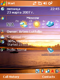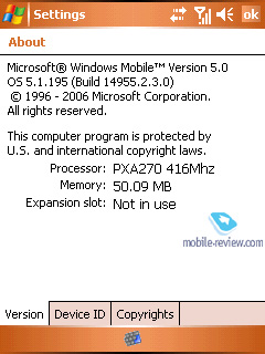 Аппарат работает под управлением Windows Mobile 5.0 for Pocket PC (AKU 2.3). О стандартных программах, входящих в состав этой операционной системы, вы можете прочитать в соответствующем обзоре на нашем сайте.
