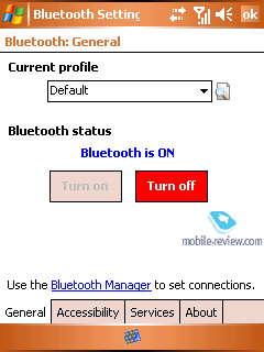 Встроенный модуль Bluetooth имеет версию 2.0. В аппарате используются драйвера от Broadcom (Widcomm). Количество поддерживаемых профилей достаточно велико и может вызвать трепет у неподготовленного пользователя. Asus P525 включает все необходимые профили, среди которых и A2DP (передача стереозвука на Bluetooth-наушники).
