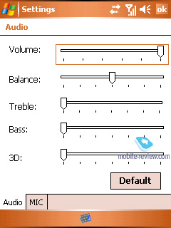 Audio – программа настройки звука. С ее помощью можно отрегулировать баланс (правый и левый наушники), также доступны следующие параметры: 3D, Bass, Treble. Здесь настаивается уровень чувствительности микрофона при записи и сами режимы записи.