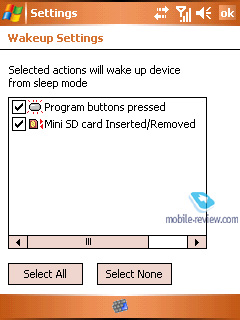 Wakeup source – приложение настраивает возможность активации аппарата после нажатия боковой клавиши или после размещения в нем карты памяти.