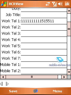 На практике программа успешно сканирует цифровые данные (номера телефонов, факс и т.п.) и переводит их в поля, но буквенную информацию она пропускает. Теоретически поля имени и некоторых данных можно заполнить и вручную, так что в некоторых случаях этому приложению можно найти применение.