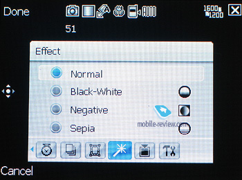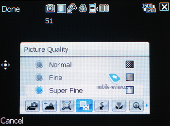 Интерфейс камеры довольно оригинален, он чем-то напоминает оформление MacOS, здесь используется похожий на Aqua стиль. Это всплывающее окно, в котором все настройки выстроены в ряд, при выборе того или иного подменю в верхней части экрана появляются его детальные настройки. Пользоваться им вполне удобно, не считая слишком мелких элементов прокрутки списка настроек, для выбора которых приходится буквально целиться пером.