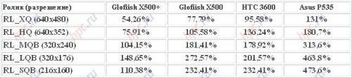По традиции, мы протестировали возможности воспроизведения видео Glofiish X500+ с помощью популярного плеера TCPMP (The Core Pocket Media Player) версии 0.71RC1. Напомним, что нормальным показателем является 120%, ну и конечно, чем выше показатель, тем лучше.
