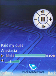 Музыкальный плеер стандартный, у него только несколько изменился интерфейс (напоминает плеер в Nokia 3250 по возможностям). К минусам относится отсутствующая поддержка Album Arts. В целом для немузыкального решения плеер вполне достойный, качество звучания типично для платформы S60 (безусловно, проигрывает Nokia N91, но сравнимо с тем же Nokia 3250).