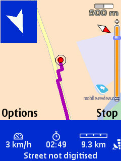 В течение нескольких дней мы ездили по Москве, используя Nokia N95 и Nokia 6110 одновременно. Результат оказался поразительным. Так, в целом навигация с помощью Nokia N95 не всегда была точной с позиции прокладки маршрутов изначально, путь закладывался не всегда оптимально, зачастую проходил по второстепенным дорогам. В Nokia 6110 точность или если так можно сказать корректность прокладки маршрута выше. Но обнаружилась иная проблема, пересчет маршрута на этом аппарате не всегда корректен. Например, двигаясь согласно маршруту и пропустив поворот, мы были вынуждены ехать в обратную сторону от необходимой точки (следующий поворот был в 2 километрах). Все время движения Nokia 6110 пересчитывал маршрут и пытался заставить нас развернуться через две сплошных полосы с нарушением правил. Подобные казусы были редки, но они случались. На Nokia N95 мы их ненаблюдали ни разу.