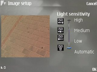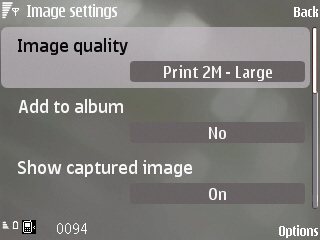 Меню камеры по функционалу напоминает N75 и N80. Поддерживается выбор программ съемки, редукция красных глаз и прочие характерные для мобильных камер настройки. Режим макро и автофокус отсутствуют.