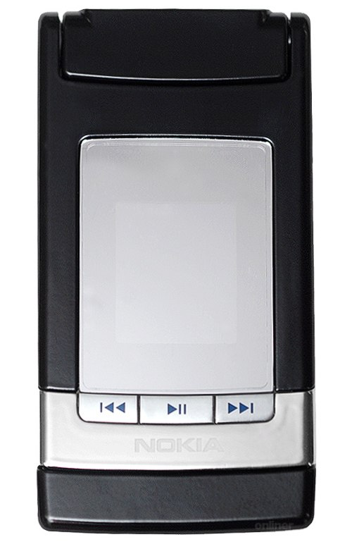 На лицевой поверхности телефона расположен внешний дисплей. Разумеется, для зрительного увеличения площади экран помещен в центр зеркальной поверхности, которая довольно маркая. Под дисплеем находится серебристая полоска, на которой размещены три кнопки для управления плеером. Работают они примерно в том же режиме, что и на рассмотренных нами ранее N75 и 6290.