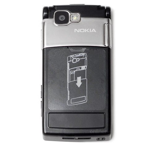 Задняя крышка съезжает вместе с боковыми закраинами и кнопками. Крепится она довольно жестко и вряд ли когда-нибудь разболтается. Обнаженная начинка телефона выглядит довольно оригинально, особенно если вынуть батарейку BL-4B на 700 мАч. Как нетрудно заметить, емкости аккумулятора несколько недостаточно (батарея, кстати, вполне обыкновенная, применявшаяся, к примеру, в телефонах Nokia 6111 и 7370).