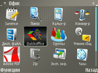Если обратиться к программной "начинке", то ряд изменений мы обнаружим и здесь. Так, разработчики объединили две программных группы - "Органайзер" и "Офис", что вполне естественно. Теперь, обратившись к меню "Офис", мы обнаружим там не только свежую версию пакета QuickOffice, позволяющую работать с текстовыми файлами, электронными таблицами и презентациями в форматах Microsoft Office, но и часы, калькулятор и многое другое, что ранее присутствовало в меню "Органайзер".