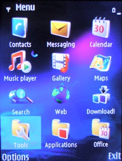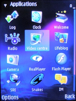 Главное меню аппарата стандартно для большинства моделей на S60, тем более, последних версий с использованием FP1. Любопытно другое: помимо основного меню разработчики предусмотрели быстрый переход к "мультимедийному меню", который осуществляется открытием верхней части слайдера. Любое меню в аппарате, естественно, настраивается, есть возможность создавать папки в разделах, менять местоположение иконок и внешний вид меню в целом. Для "мультимедийного" меню предусмотрено несколько различных тем, анимация, оно представлено в вид колеса и имеет горизонтальную организацию. Из этого меню доступны следующие разделы: радио, музыкальный плеер, галерея, браузер, карты, опция "Welcome", для детальной настройки почты, подключения к интернету, игры, блог, а также раздел "видео центр". Этот раздел меню полностью анимированный, и, как ожидалась, его загрузка немного притормаживает.