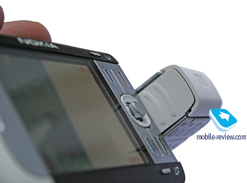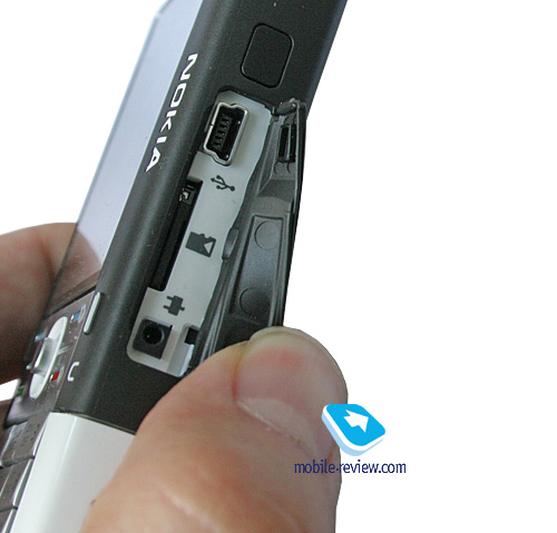 На левой боковой стороне находится две клавиши регулировки громкости, тут же на поворотном блоке объектив 2-мегапиксельной камеры, плюс светодиодная вспышка. На правой стороне окошко ИК-порта, а за резиновой заглушкой, разъем miniUSB, слот для карт памяти ддерживается «горячая» замена, плюс разъем зарядного устройства. Заглушка из мягкой резины, не возникает ощущения, что она вылетит или как-то деформируется со временем, хотя это и вероятно при неаккуратном обращении.