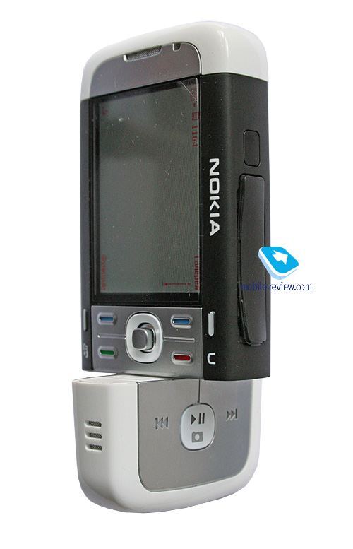 За прообраз явным образом взят пульт управления от Nokia 3250 или старшей модели Nokia N91. Но сколь разительны отличия, начнем с того, что использован мягкий, белый пластик, он очень качественный и наушники с пультом выглядят дорого. Нет и намека на дешевизну, которая присутствовала в предыдущем аппарате. На телефоне, к сожалению, только разъем 2.5 мм, он расположен на нижнем торце, в него и подключается пульт. Уже к пульту идет подключение наушников. На проводе есть зажим, излишнюю длину провода можно зафиксировать с его помощью. Блок пульта имеет зажим, что позволяет прикрепить его к одежде, лицевая панель с металлической накладкой, что необычно для продуктов этого ценового класса. Есть кнопки перемотки, проигрывания, начала разговора, в пульт же встроен микрофон. С помощью боковой кнопки фиксации можно заблокировать клавиши и тогда предотвращается случайное их нажатие. С другой стороны присутствуют клавиши регулировки громкости.