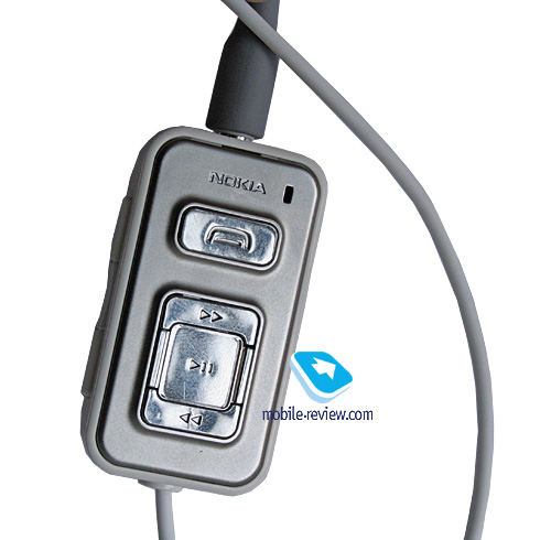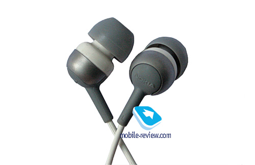 Общая длина провода достаточна, чтобы носить телефон не просто на поясе, но и в сумке, висящей у колен. Вкладыши наушников капелек силиконовые, они мягкие. Все время не удавалось избавиться от ощущения дежа-вю, подобные наушники стали стандартными в серии Walkman, правда, цвет у них другой. Качество звучание собственно наушников сравнимо, с небольшим перевесом таковых от Sony Ericsson. Формально можно говорить для определенных композиций об их идентичности. Вспоминая наушники от Nokia N91 можно утверждать об их сравнимости по качеству звучания, с поправкой на худшее исполнение в старшей модели и худшие материалы, плюс на тот факт, что и сам Nokia N91 проигрывает музыку значительно лучше. В качестве краткого резюме можно сказать, что впервые Nokia не во флагманском продукте применила такого качества наушники. Выигрыш по сравнению с продуктами от Walkman идет не по качеству, а по наличию полнофункционально пульта в комплекте поставки. Для продуктов от Sony Ericsson, он, как правило, является опциональным.
