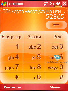 Помимо перечисленных приложений коммуникатор предлагает альтернативную оболочку для сервиса вызовов. Вместо традиционной клавиатуры отображается оранжевая с более крупными клавишами, в остальном функции оболочки сохранены.
