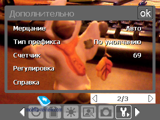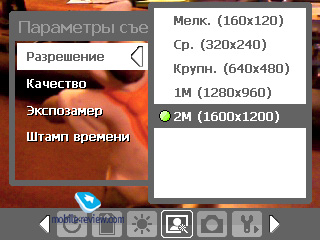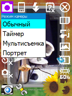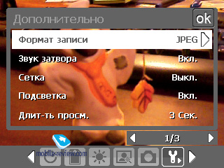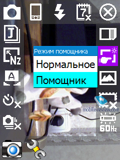 Как и в большинстве остальных аппаратов HTC, здесь используется традиционный для тайваньцев интерфейс: полупрозрачное меню на фоне дисплея в режиме видоискателя. В целом он удобен, хотя перемещение между пунктами могло быть и проще. Немного поговорим об интерфейсе камеры, ее настройках (названия элементов и меню указаны для локальной версии коммуникатора). Для фото доступны следующие разрешения: