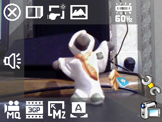 Также можно настроить формат файла (BMP или Jpeg), установку даты на снимок, таймер, некоторые другие параметры. Видео записывается в формате 3GP, c разрешением 320x240, 176x144 или 128x96. В целом настройки в режиме видео повторяют настройки в режиме фото. Из особенностей отметим: включение/отключение записи звука, выбор качества видео – высокое, среднее и низкое. Качество и разрешение записанного далеки от идеала, хотя разобрать объекты съемки все же можно.