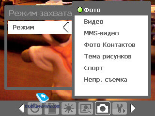 Помимо режимов фото и видео присутствуют еще несколько: видео для MMS, фотокарточка для контакта, режим «спорт». Серия до 5 фотографий с малой задержкой времени – «спортивный» режим.