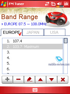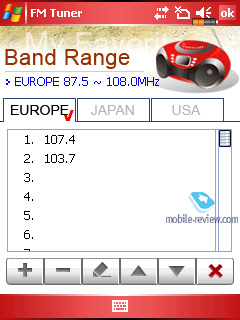 FM-радио – для прослушивания радио используется приложение FM tuner. Диапазон допустимых частот для программ впечатляет. Всего присутствует три вкладки-диапазона: Europe (87.5 – 108.0), Japan (76.0 – 90.0) и USA (87.5 – 107.9). В каждой вкладке можно сохранить до 50 радиостанций с возможностью редактирования. Для радио доступна функция отключения экрана, при этом трансляция с радиостанции будет продолжаться.